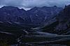 фотографии наступающих сумерек, сделанные на полуспуске. Долина внизу